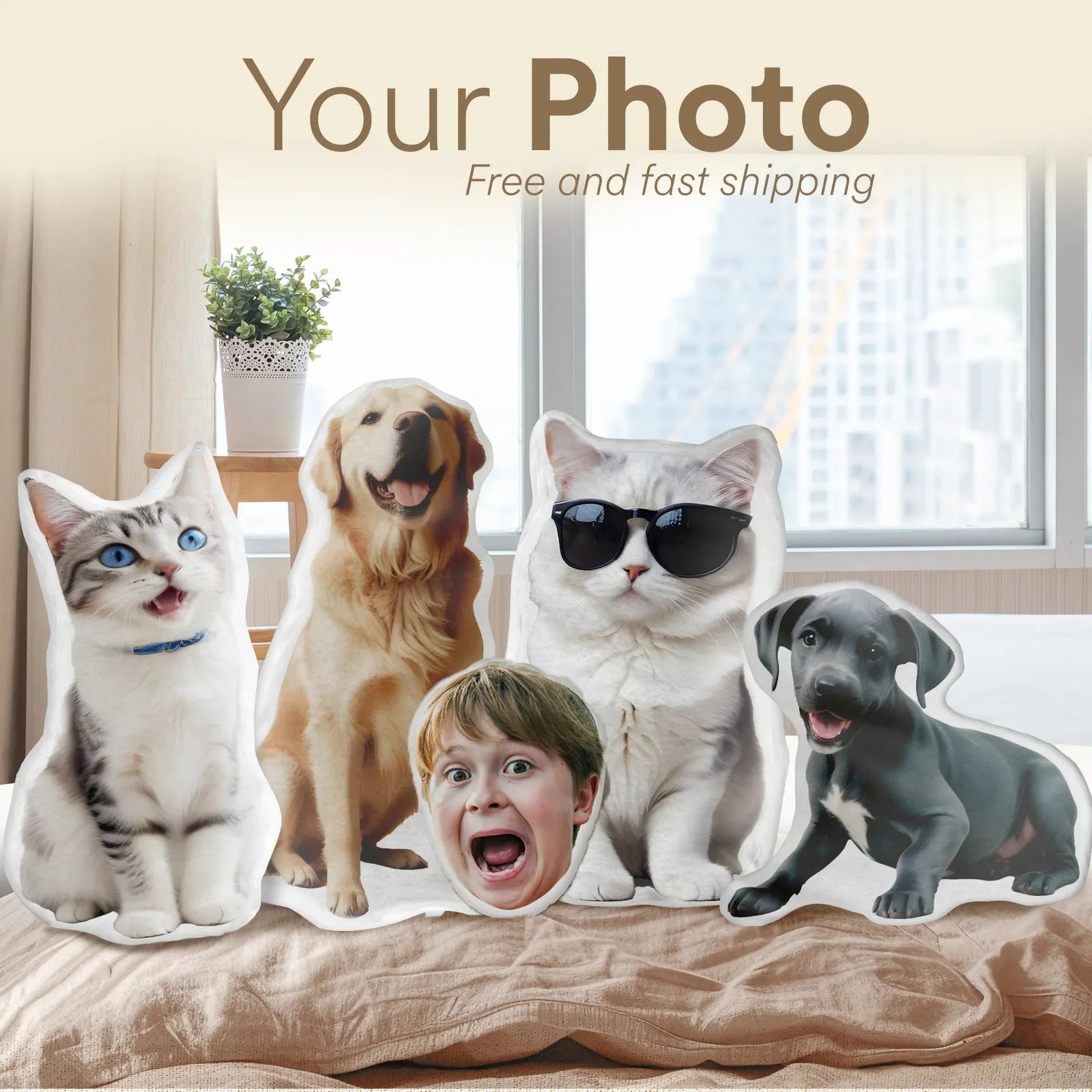 Embrace the joy of personalization with your very own pet-inspired plush pillow.